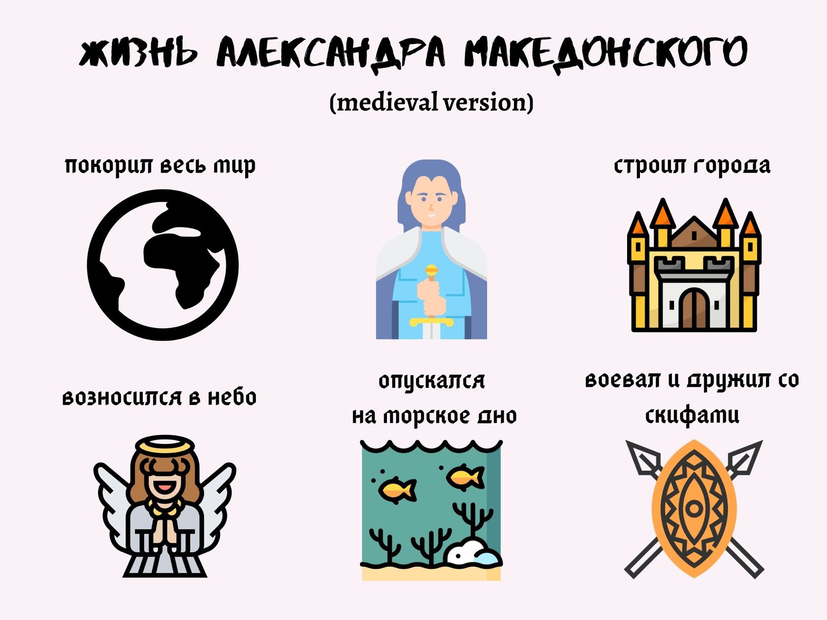 Гербы Александра Македонского нестабильны. На них отображены разные фигуры, щиты имеют разный цвет. Как можно предположить, средневековые авторы хотели отобразить социальный статус Александра как царя и полководца (корона, грифон, лев) или же его храбрость и неудержимость в бою (лев). Есть версия, что лев на гербе мог появиться и из - за мифа о рождении Александра Македонского. Данные гербы показывают читателю величие, власть и храбрость своего героя.